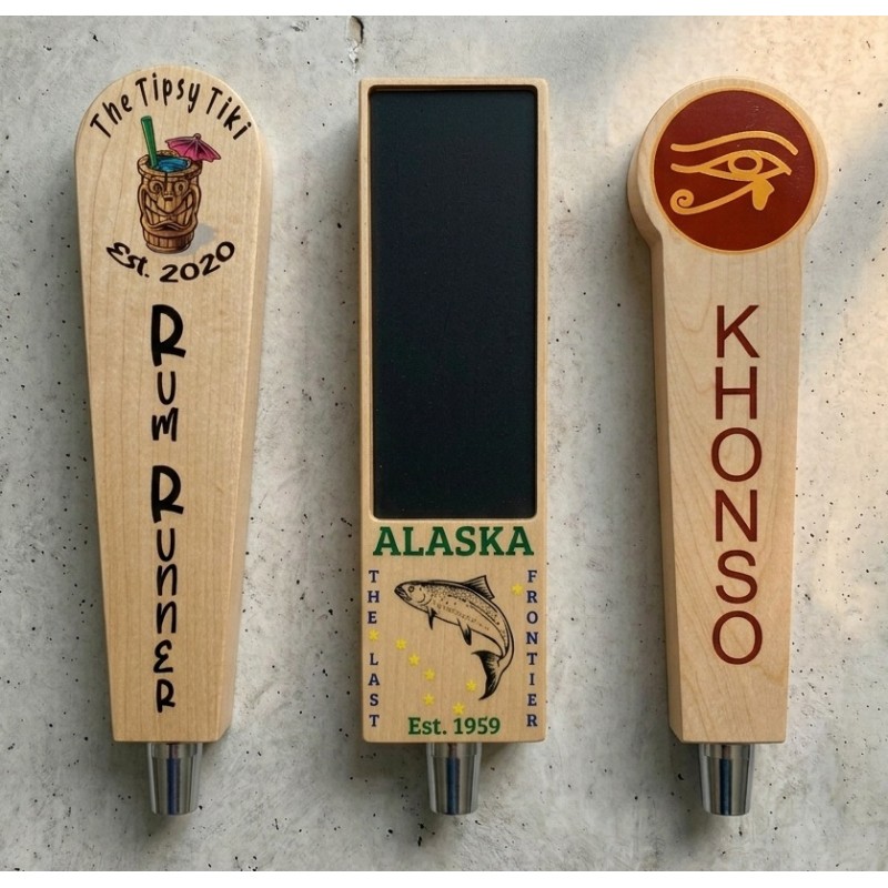 Upload and images/logos and answer as much of the below form below. We'll take your input and customize one of our stock shape tap handles with your ideas.